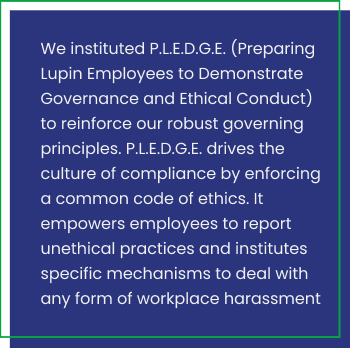 Good business requires honesty, integrity, commitment, transparency and trust – all pillars of stable governance. These values form an indivisible part of the Lupin culture and helps us uphold our promise of caring towards our customers. They underpin the way we conduct business and how we interact with our clients, our employees and the community.