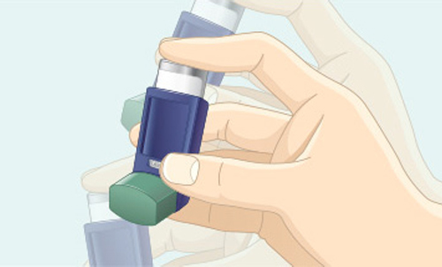 Right after the spray comes out, take your finger off the canister. After you have breathed in all the way, take the inhaler out of your mouth and close your mouth