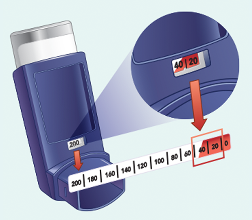 - Throw away (discard) the inhaler once the dose indicator displays “0”